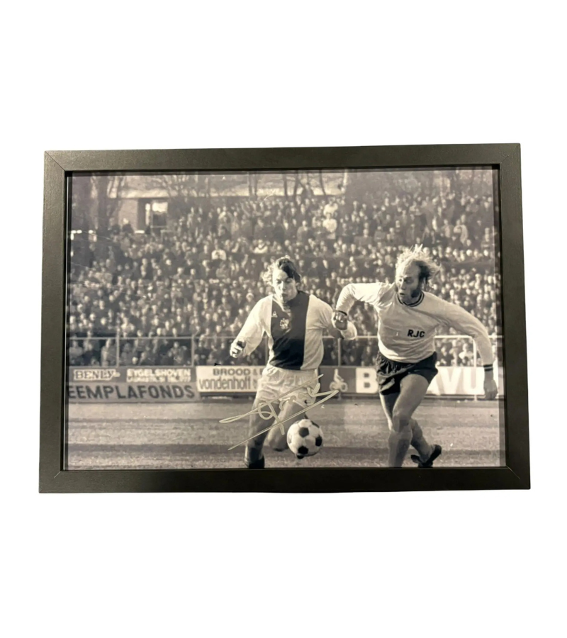 AFC Ajax ingelijst actie foto gesigneerd door Arnold Muhren met certificaat van SoccerSignings.
