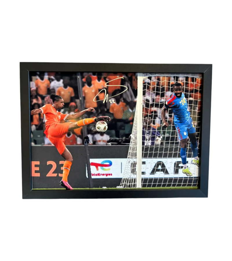 Ivoorkust ingelijst actie foto gesigneerd door Sebastien Haller met certificaat van SoccerSignings.